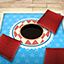 Toss the bean bag onto the inclined board. Let the bags slide upwards and into the hole.